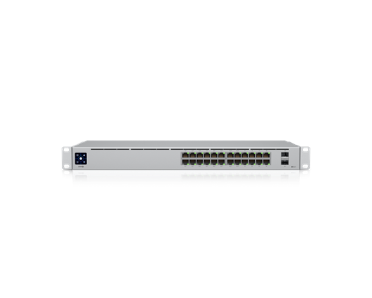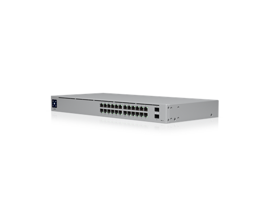 Kraftfull och smart hanterad switch från Ubiquiti med 24 Gigabit-portar, två SFP-uplinkar och 95 W PoE-budget.